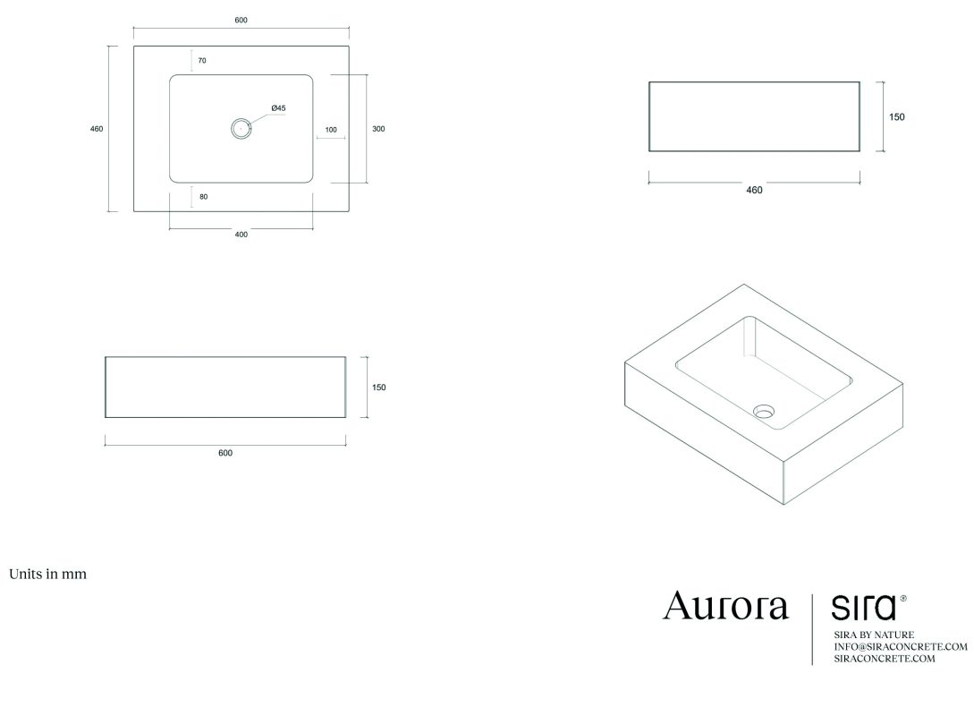 כיור מונח מלבני – AURORA בטון