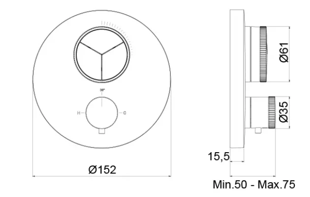 ‏כיסוי חיצוני תרמוסטטי 5 דרך מסדרת Push עגול