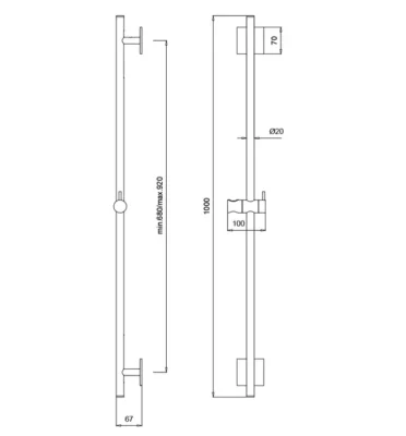 מוט הזזה 1000 מ״מ, רוזטות מרובעות