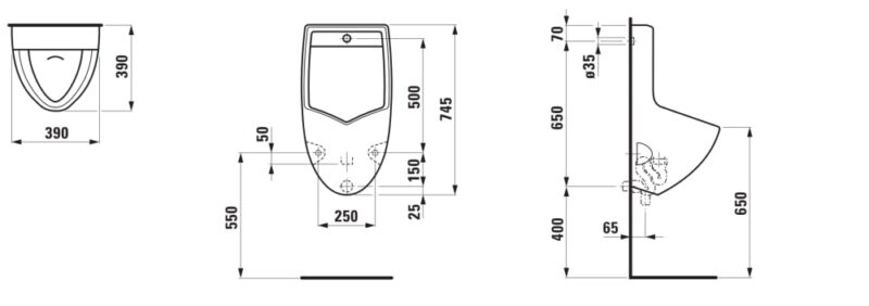 TARO – משתנה סיפון עם כניסת מים אחורית אופקית