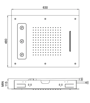 ראש מקלחת צמוד תקרה מובנה, 3 מצבי זרימה